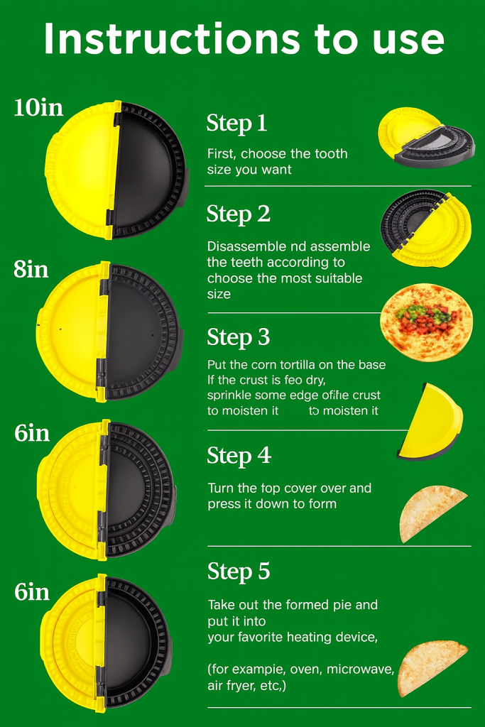 Select the appropriate size mold (6in, 8in, or 10in) depending on your tortilla or dough size.